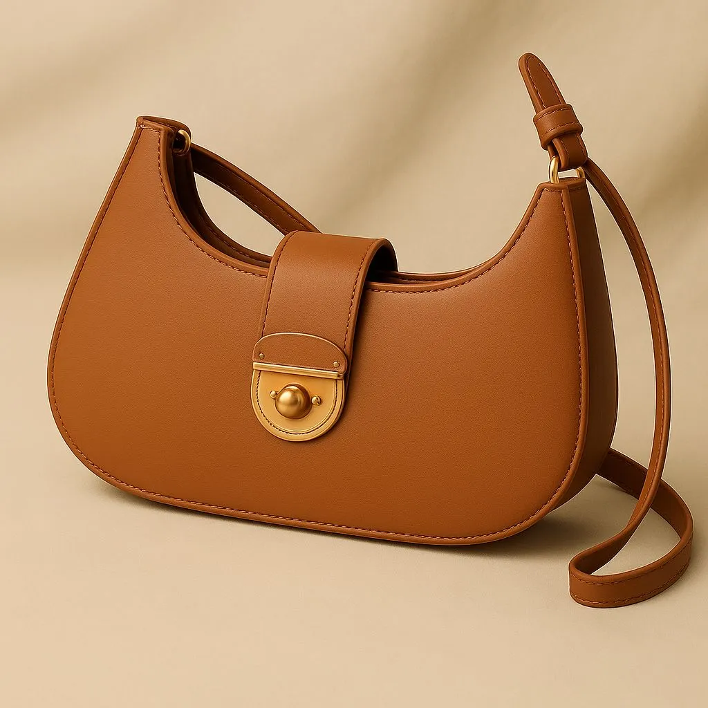 Elevate your style with this premium hobo style handbag, crafted with smooth faux leather and elegant gold-tone hardware. Featuring a crescent shape design, spacious interior, and secure turn-lock closure, this handbag is perfect for both casual outings and formal gatherings. The adjustable strap ensures comfort and versatility, making it an ideal choice for daily use.